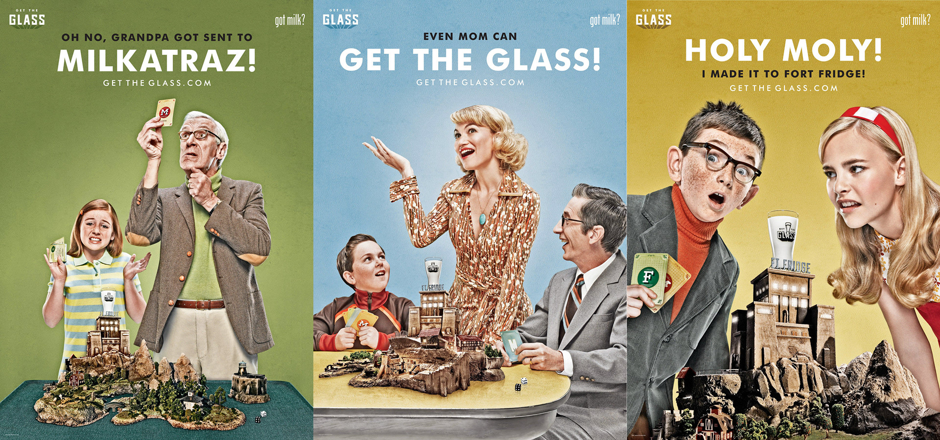 Campaign for the California Milk Processor Board touting the lesser-known benefits of milk. Story involves a family of ailing thieves on a quest to GET THE GLASS. Films came first, then we drafted off those for the interactive game, which broke all web engagement records at the time. Back when "engagement" really meant something.